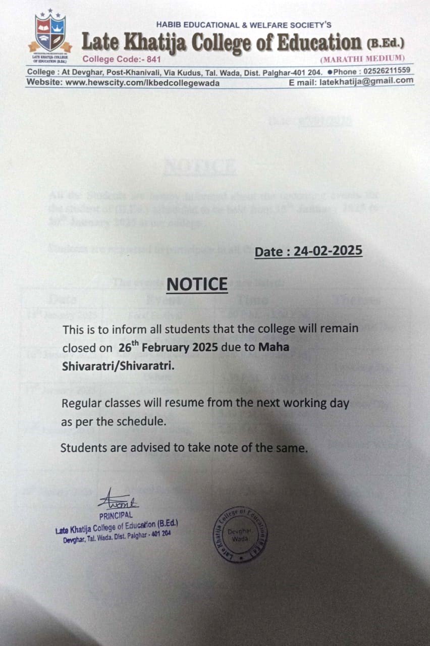 Notice : Mahashivratri
